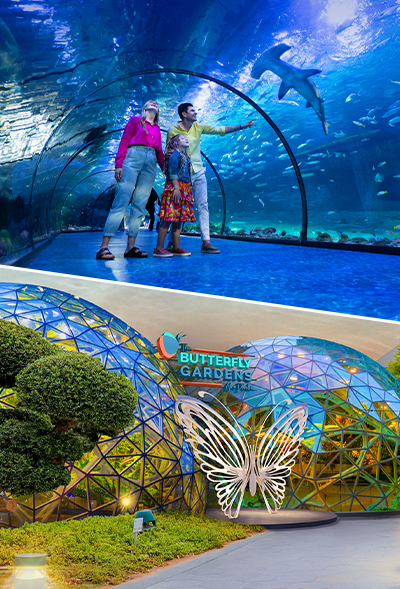 Discover our 10-zone journey, experience the breathtaking view from our Glass Bottom Boat tour and have fun feeding the fish!